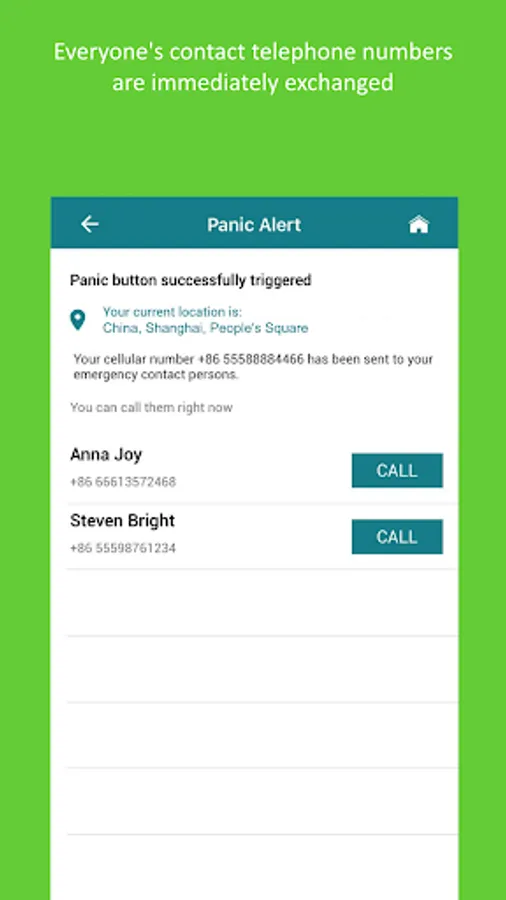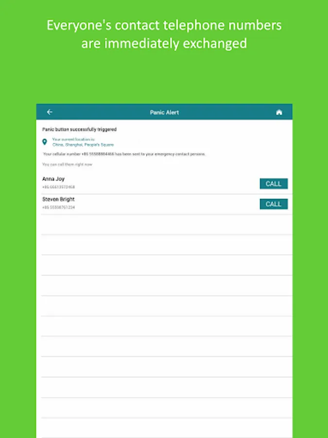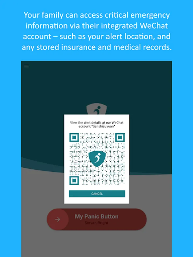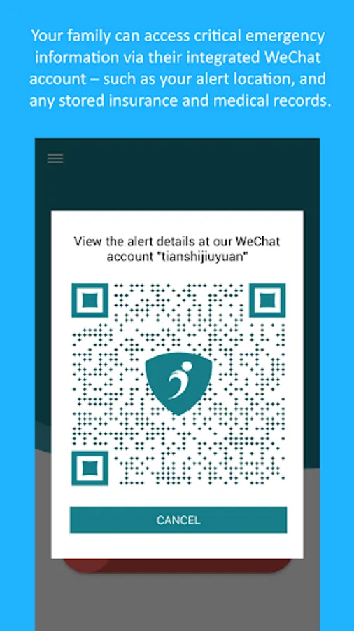 In addition to triggering and sending emergency alerts, the app is also fully integrated with our WeChat platform. This will enable your selected family members to securely access and share your custom pre-set “Rescue Wallet” in order to facilitate your rescue in your time of need: