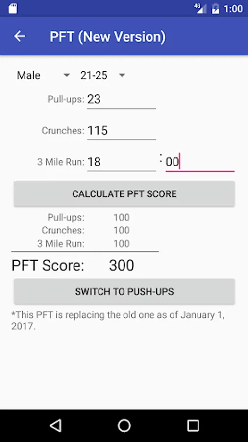 0.2.1: Added new 2017 PFT calculator (10/31/16)