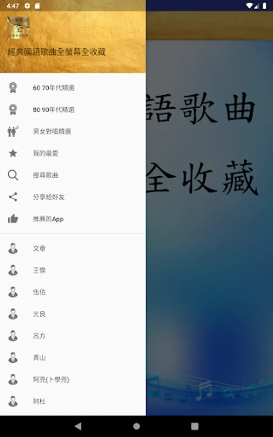 3. According to the stroke order of male singers, female singers, groups, and singer names, it is convenient for you to find your favorite songs.