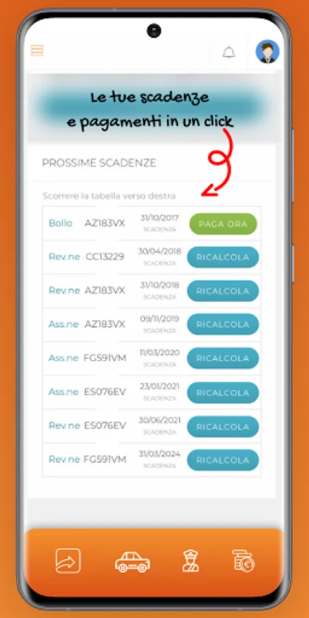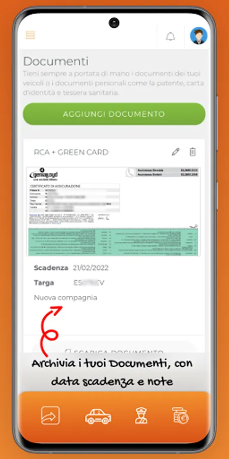 An organized and well-divided space for all vehicle and driver related documents. Each element has the indication of belonging identified with the plate, the expiration date and a textual space for important notes.