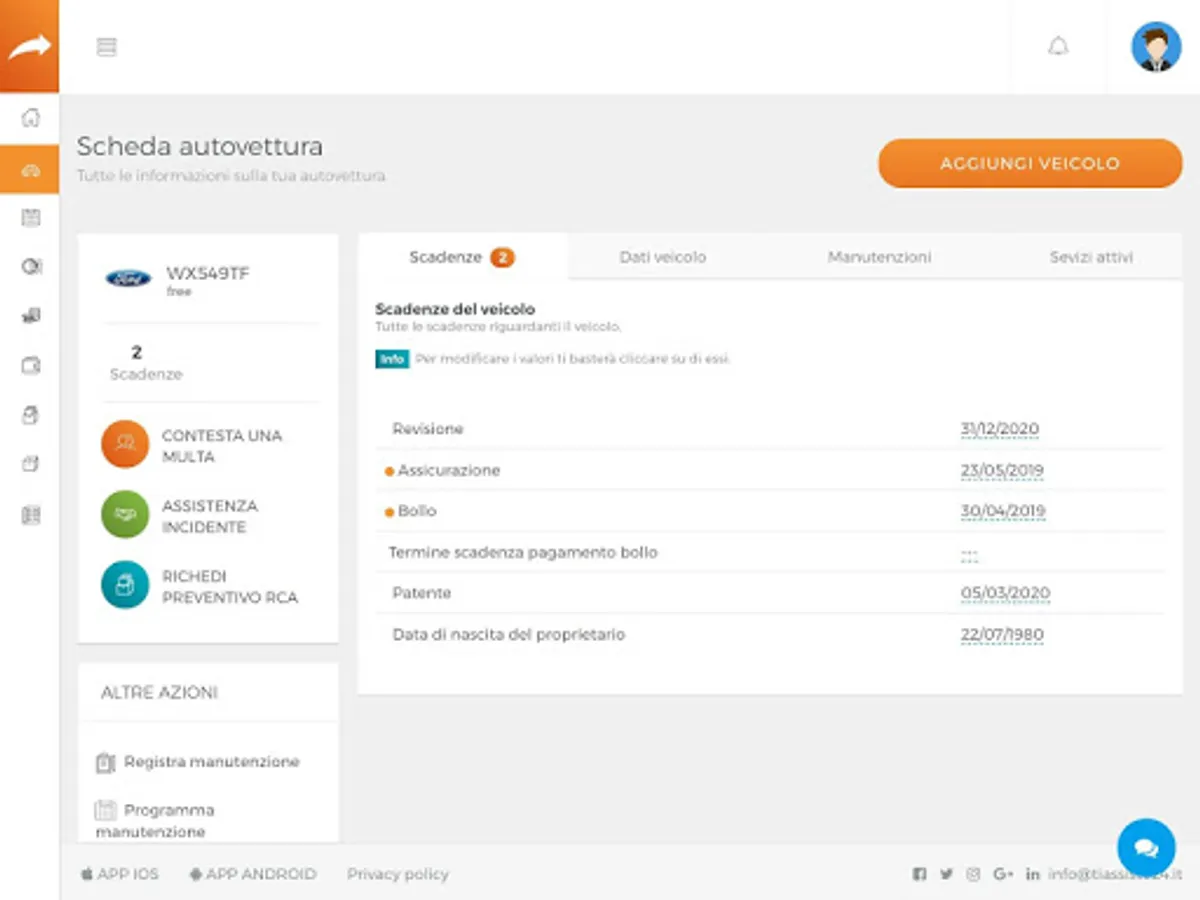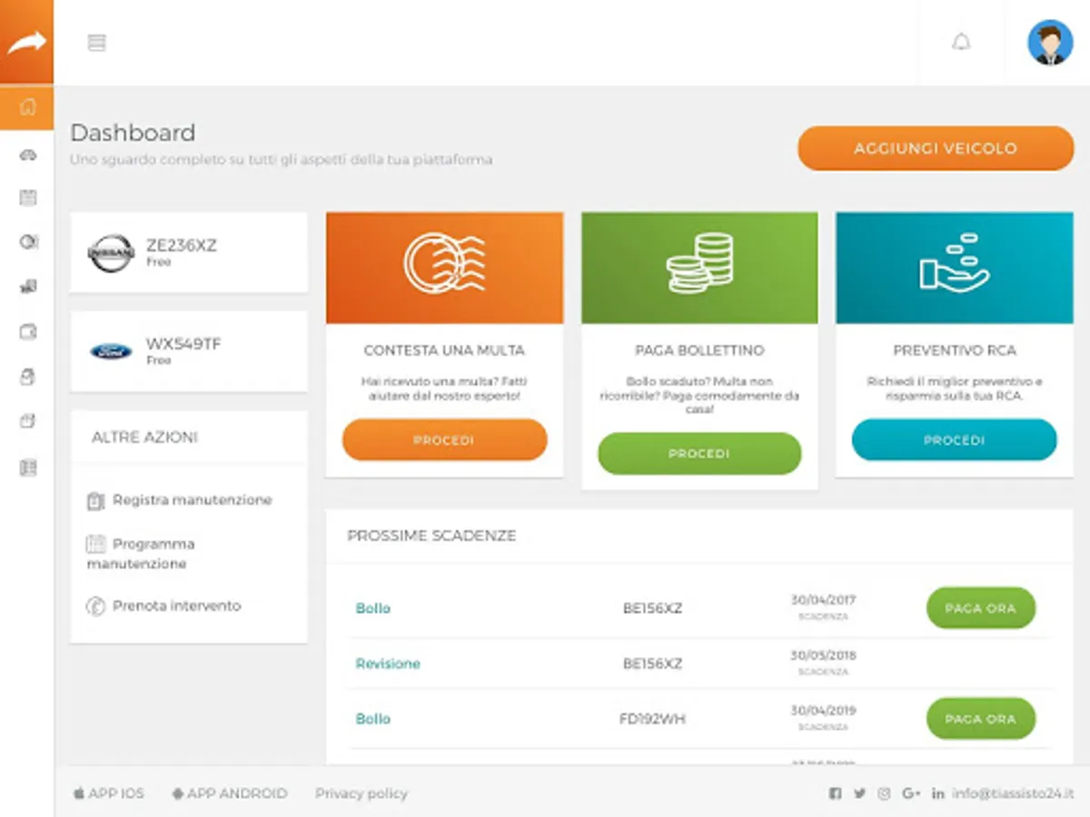 Organize the mandatory and optional maintenance of your vehicles, offers and communications from our partners.