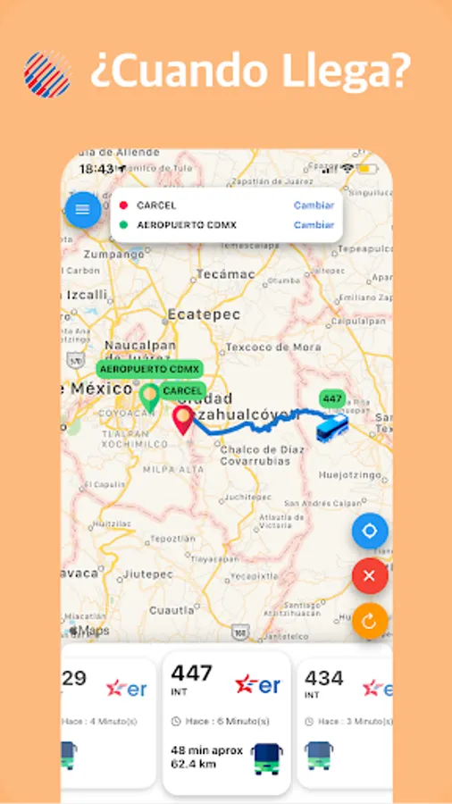 Select your origin stop and your destination stop and SmartAlert will show you which buses are about to pass through your point of origin and will arrive at your destination point, it will also show you the estimated time in which the bus will be arriving and its last location. registered.