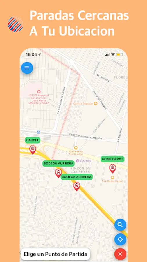 Write the name of the destination or origin (street, neighborhood or establishment etc.) of interest and SmartAlert will show you within a radius of 500 m the authorized stops that you have available.