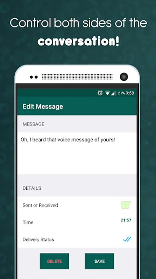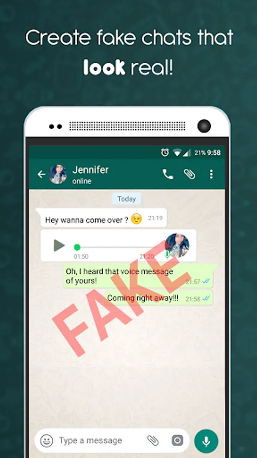 Note: The Fake Chat Conversation app is a prank app. It is not a real chat app. It only allows you to create fake chats.