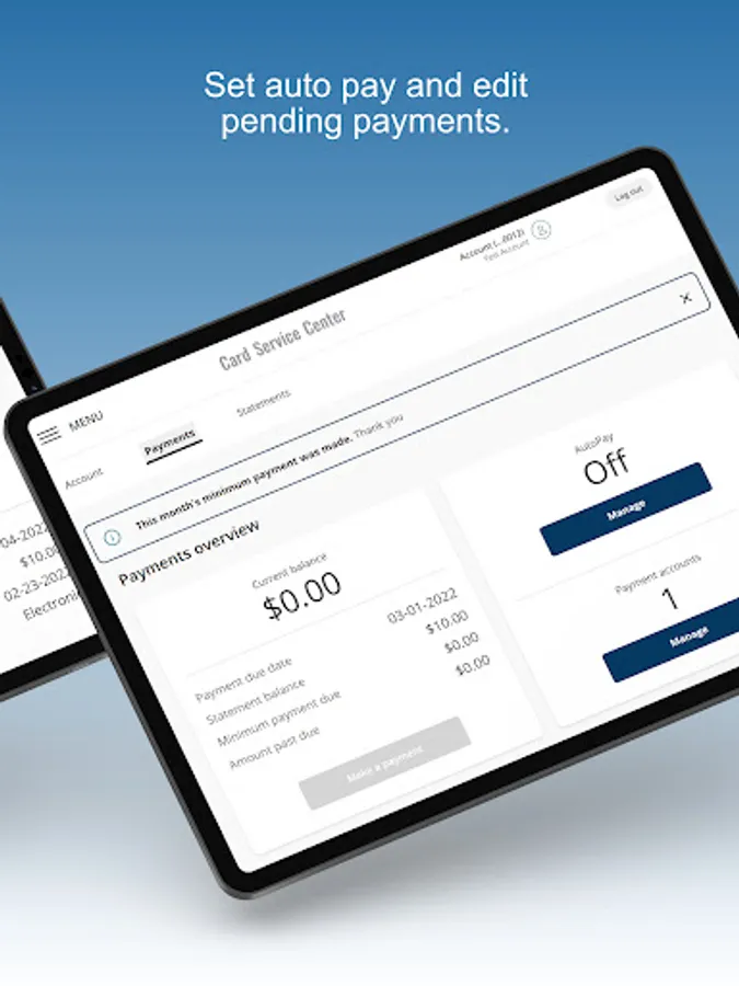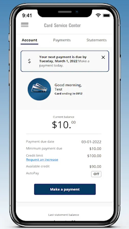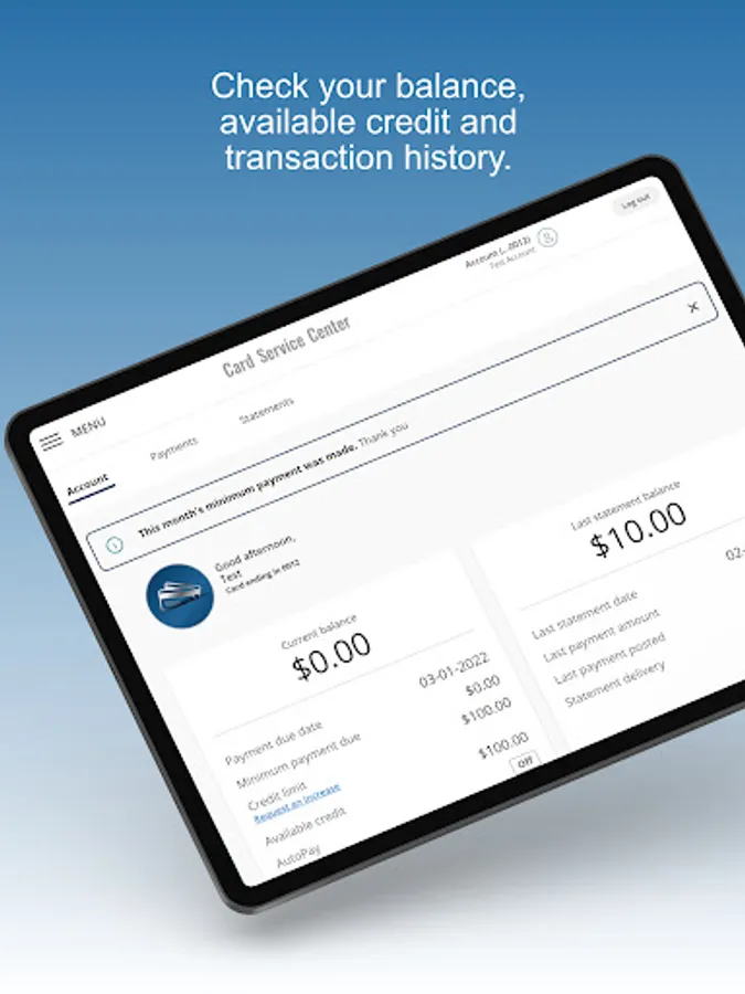 The NEW Card Service Center Mobile App, provides you with easy access to manage your credit card account on the go. With user-friendly navigation, it’s safe, secure and simple!
