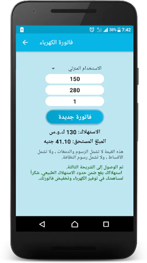 My invoice is a free application that works on phones and smart devices, where you can calculate the electricity, gas and water bill within the Arab Republic of Egypt according to the latest pricing for the monthly consumption slides for different uses, and you can also inquire about the landline phone bill.
