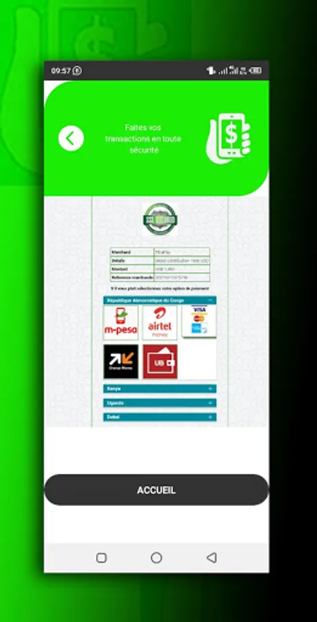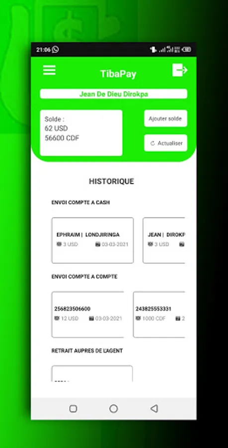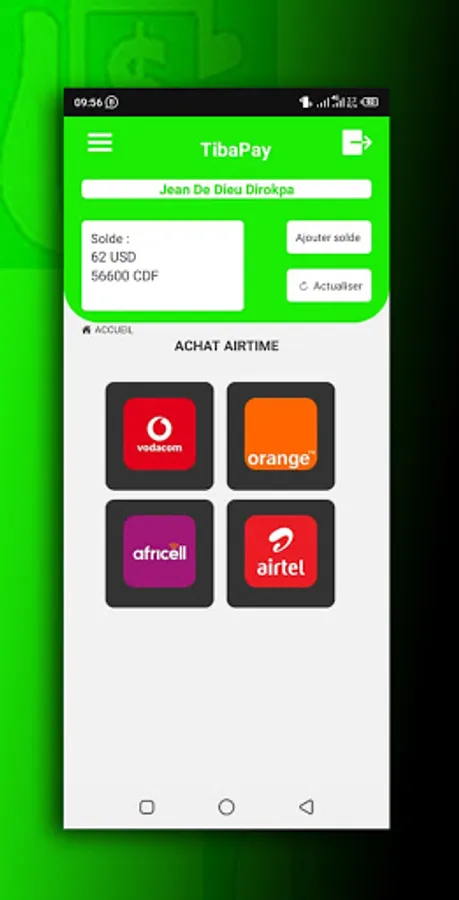 The TibaPay application is a wallet of multi-product rechargeable by mobile Money that allows you to Sell stock units from all networks and re-subscribe TV customers anywhere in the DRC in complete security.