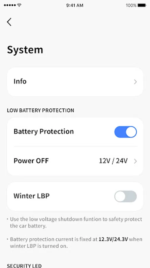 - Setting user Preferences : resolution and frame, time, sensitivity, product volume, Battery prevention system(Uninterrupted recording function) and other information