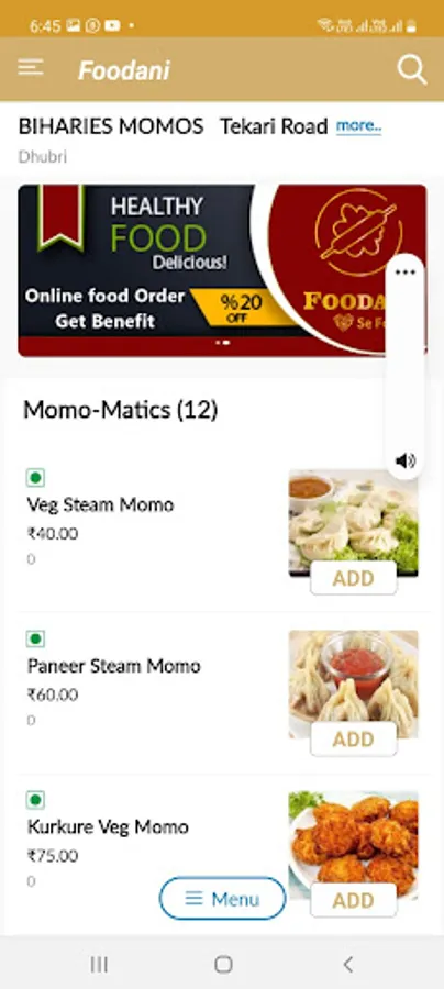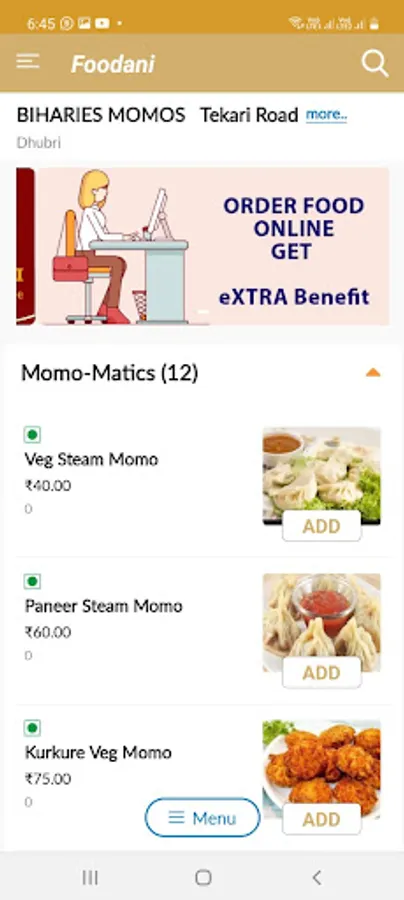 Self Pick Up - At Foodani, We love to serve you at your comfort zone but if you are nearby, we offer take away facility.