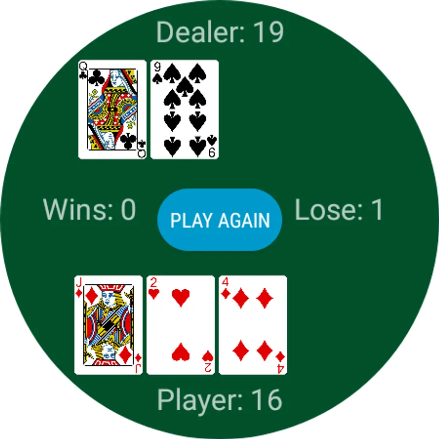 Black Jack 21 is a fun little game for your Wear Os Watch.