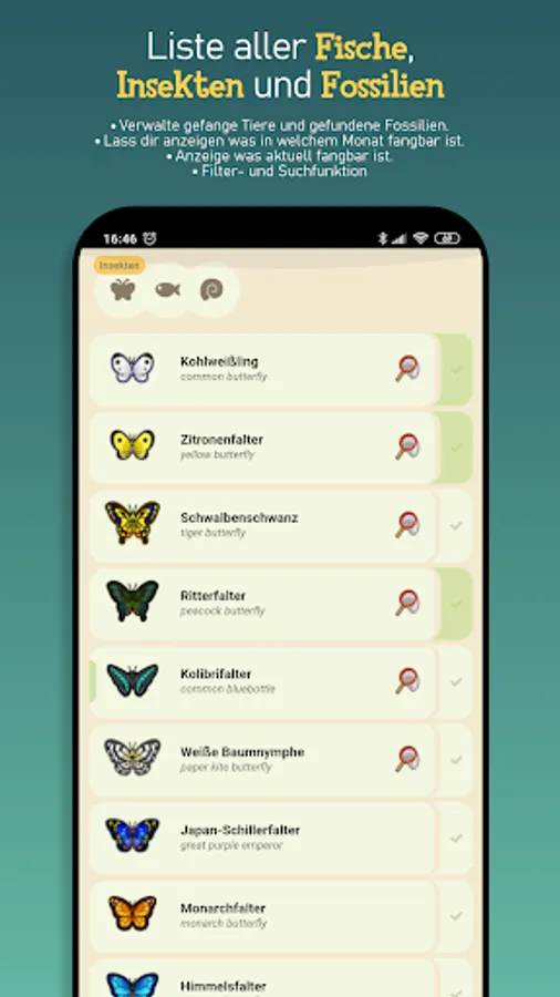App shows you all the information you need for Animal Crossing. Complete list with all animals including all information about the animals, fossils, and the works of art.