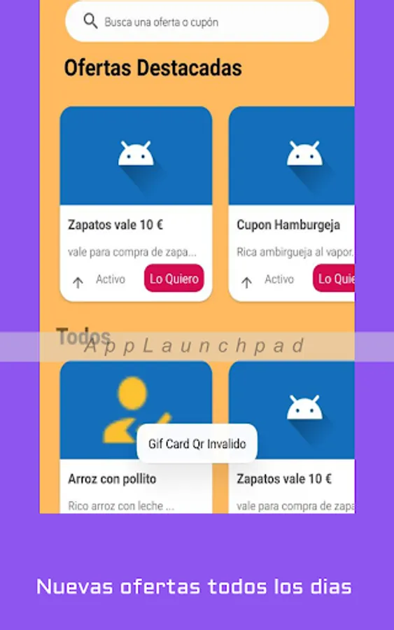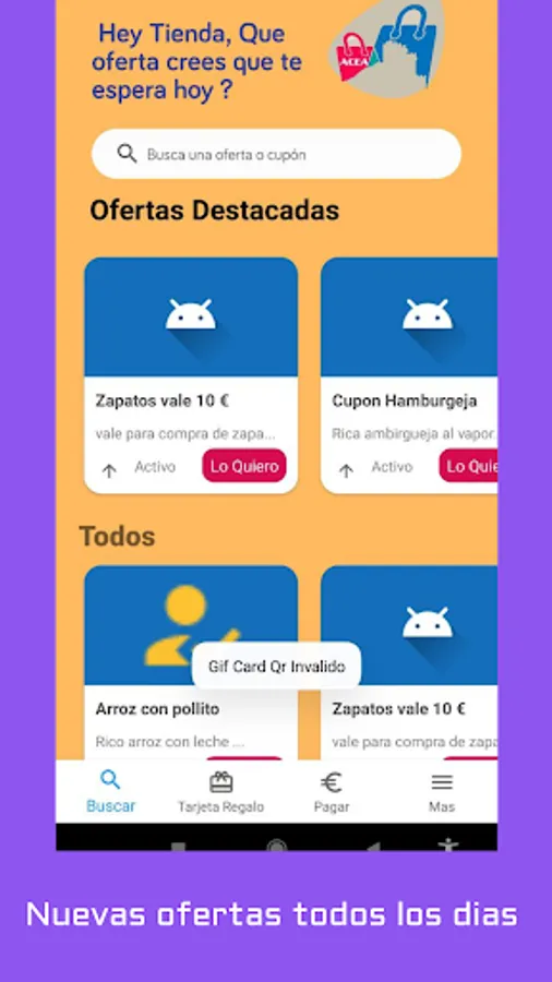 App developed for small and medium businesses, this app has the purpose of making money transactions through gift cards, it also includes an advertising platform for the establishments included within this platform.