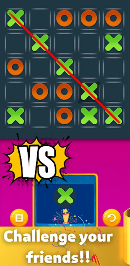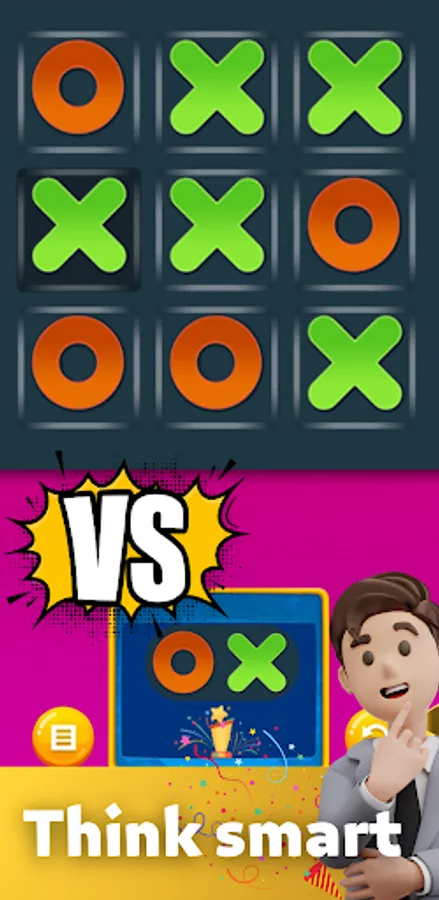 xoxo: Tic Tac Toe XO is a classic and very entertaining game that is easy to play and learn. The game is based on a nine-square board, where players try to place their marks on the empty squares in such a way that they can form a continuous line of three identical marks in any direction: vertically, horizontally, or diagonally. The game continues until the winner is determined or the players tie.