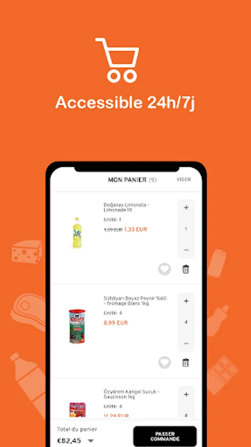 Vos courses livrées chez vous en un clic. Faites votre choix parmi notre catalog compose de +1000 produits. Passez votre commande via l'application et recevez vos courses le lendemain.