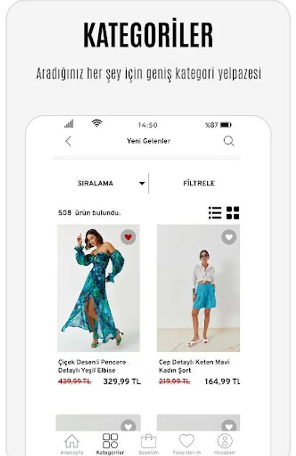You can view all our products and you can easily access the products you are looking for with the filter section, with color, size, price filters.