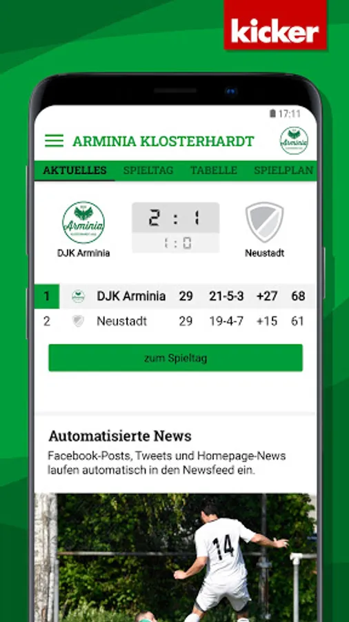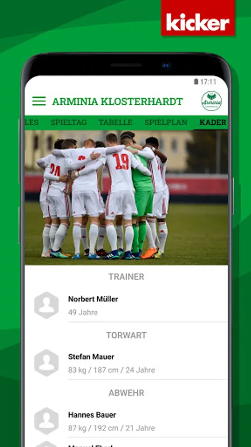 All information about the Arminia Klosterhardt club is now in the clubhouse app from kicker amateur football.