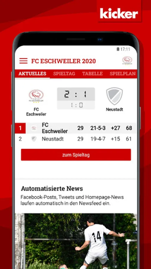 With the integrated live ticker with push notification you always stay on the ball!