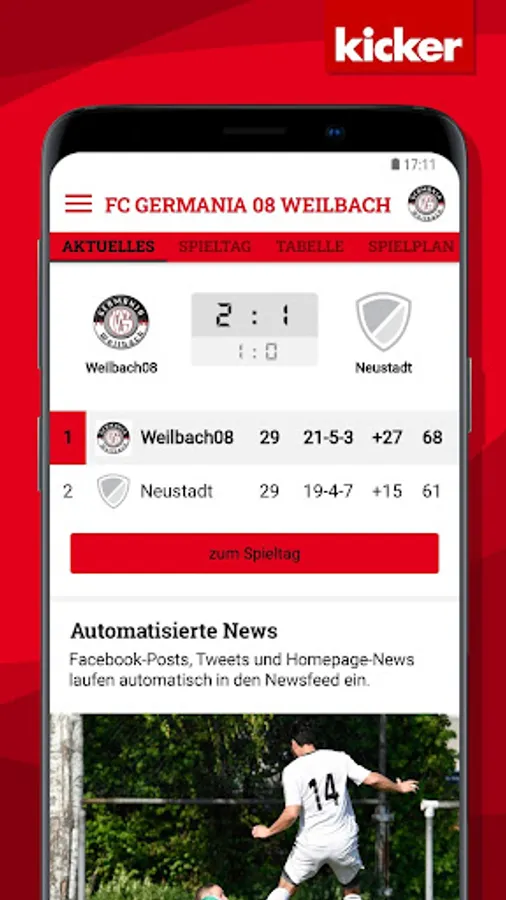 All information about the club FC Germania 08 Weilbach now in the club home app of kicker amateur football.