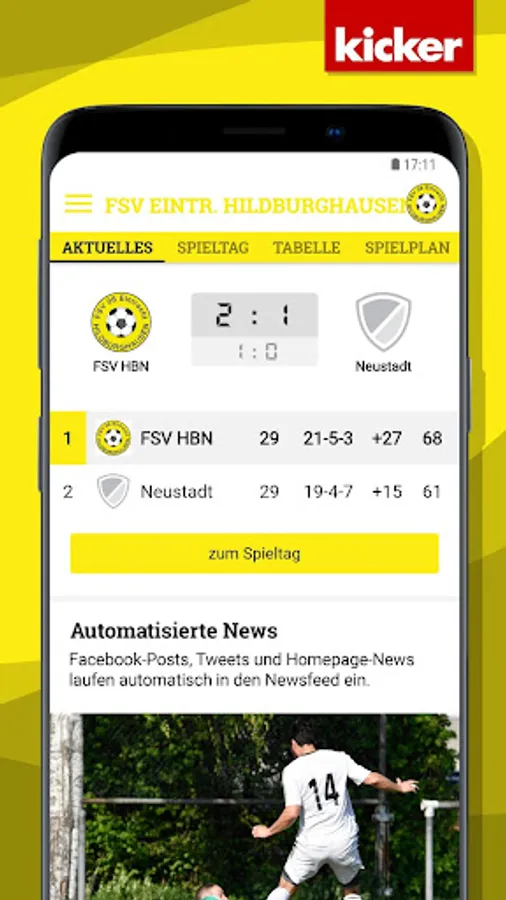 All information about our club now in the clubapp of kicker amateur football. Here you can get the latest news about the club, fixtures and results for all teams, league statistics and all information about the squad. With the integrated Liveticker with push notifications you always stay on the ball. And with practical features such as a text engine for creating game reports in seconds or the integration of Facebook News, the admin can always keep the app up to date!