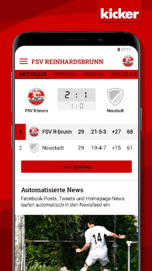 With the integrated live ticker with push notification you always stay on the ball!