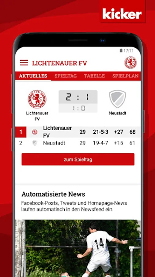 With the integrated live ticker with push notification you always stay on the ball!