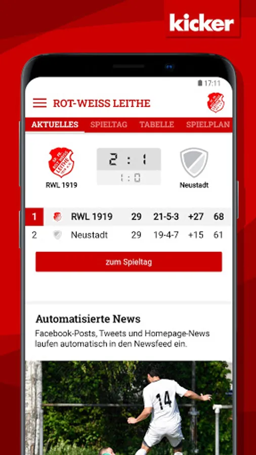 All information about the Rot-Weiß Leithe club is now in the clubhouse app from kicker amateur soccer.