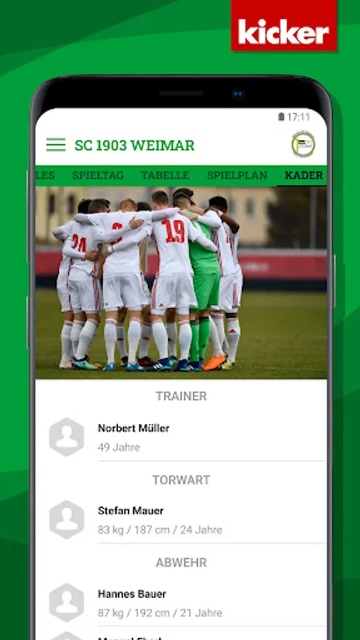 All information about the SC 1903 Weimar club now in the club home app from kicker amateur football.