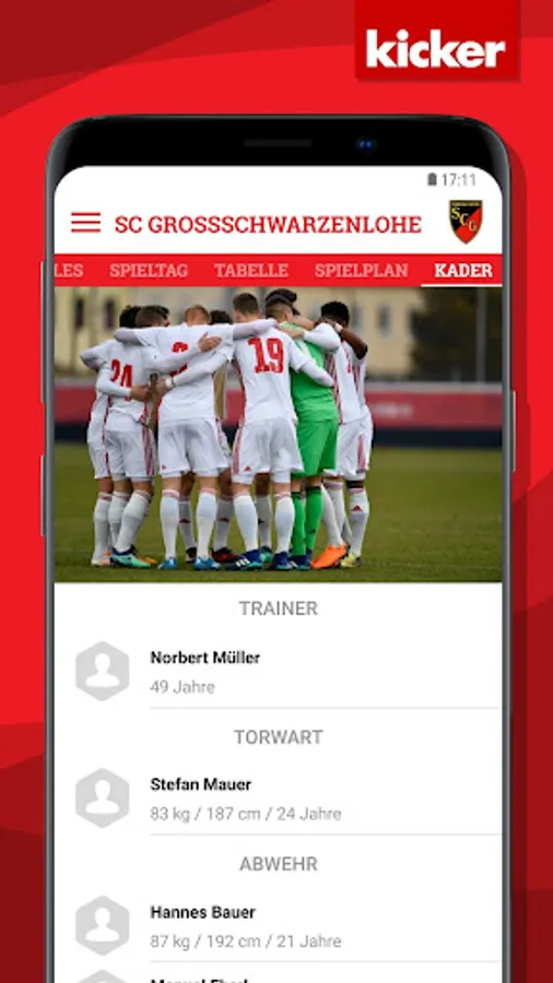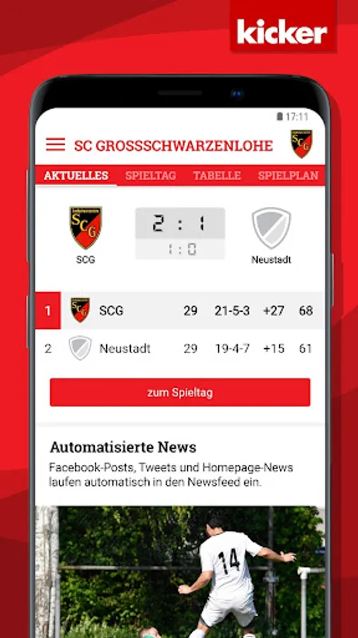All information about our club now in the clubapp of kicker amateur football. Here you can get the latest news about the club, fixtures and results for all teams, league statistics and all information about the squad. With the integrated Liveticker with push notifications you always stay on the ball. And with practical features such as a text engine for creating game reports in seconds or the integration of Facebook News, the admin can always keep the app up to date!