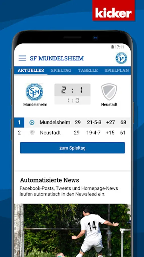 All information about the SF Mundelsheim club now in the club home app from kicker amateur football.