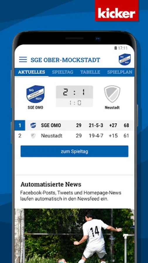 With the integrated live ticker with push notification you always stay on the ball!