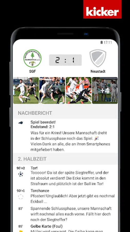 Fast access to the latest news, dates and statistics through the scrollable newsfeed with integrated Facebook, Twitter and website news!