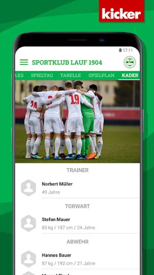 All information about the club Sportklub Lauf is now in the clubhouse app from kicker Amateurfußball.