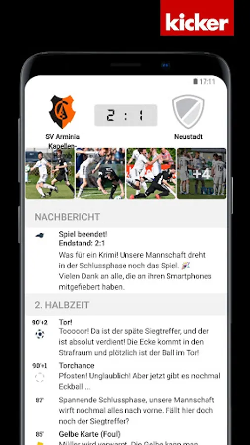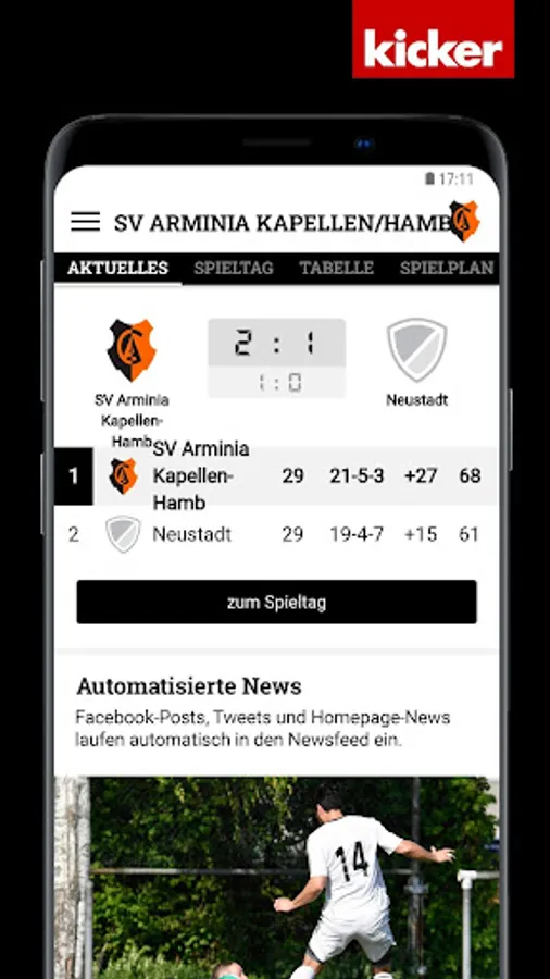 Fast access to the latest news, dates and statistics through the scrollable newsfeed with integrated Facebook, Twitter and website news!
