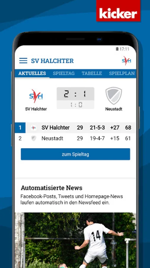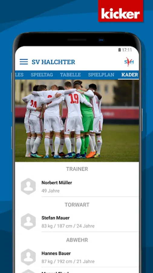 All information about the SV Halchter club is now in the clubhouse app from kicker amateur football.