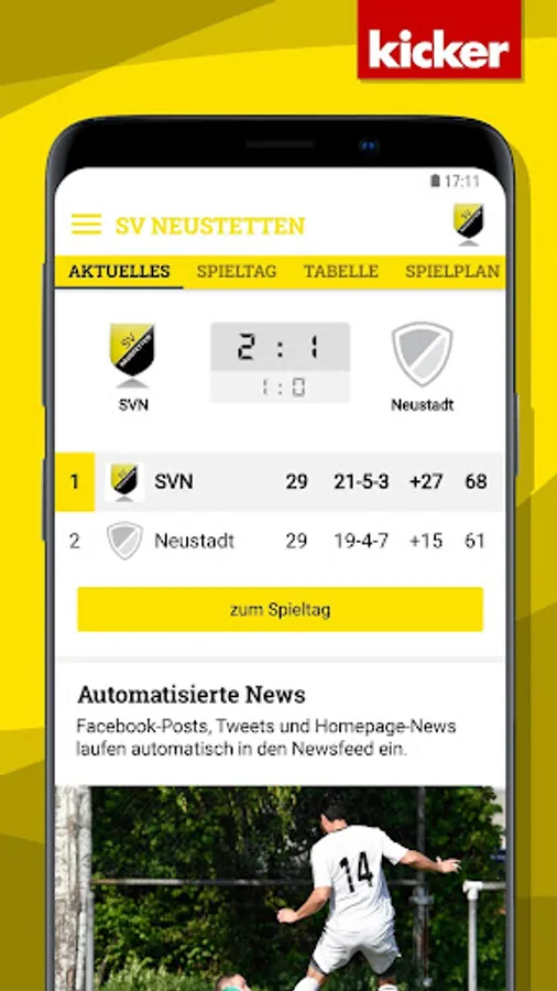 With the integrated live ticker with push notification you always stay on the ball!