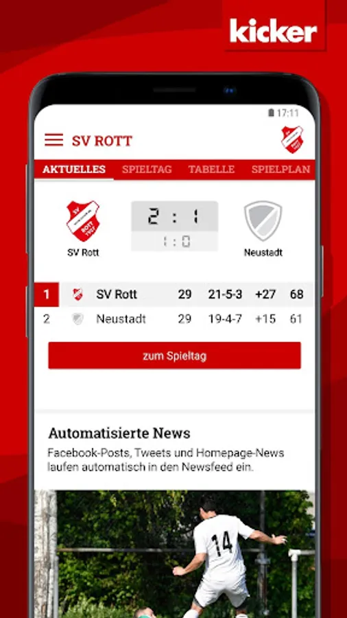With the integrated live ticker with push notification you always stay on the ball!