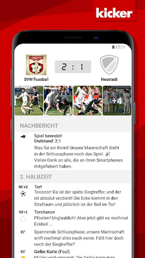 Fast access to the latest news, dates and statistics thanks to the scrollable news feed with integrated Facebook, Twitter and website news!