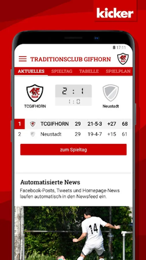 With the integrated live ticker with push notification you always stay on the ball!