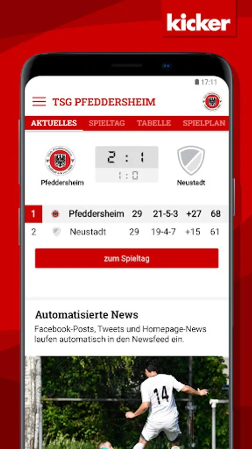 With the integrated live ticker with push notification you are always on the ball!