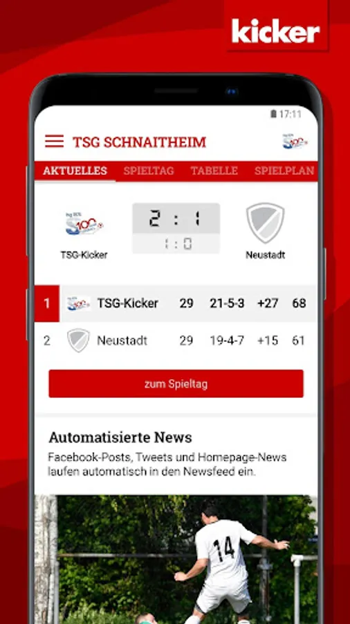 All information about the club TSG Schnaitheim now in the club home app of kicker amateur football.