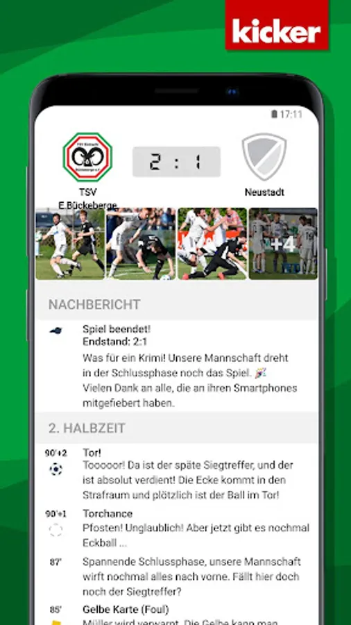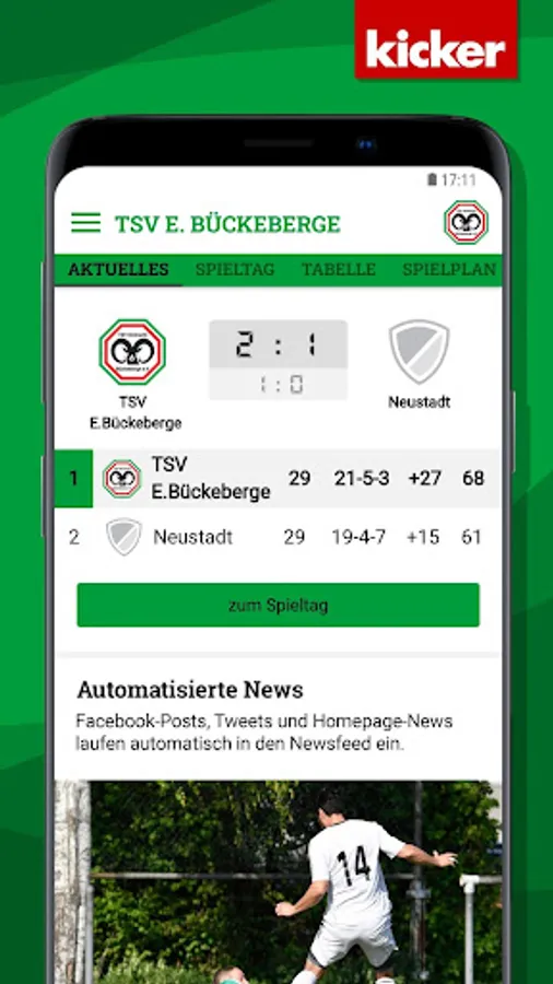 Fast access to the latest news, dates and statistics through the scrollable newsfeed with integrated Facebook, Twitter and website news!