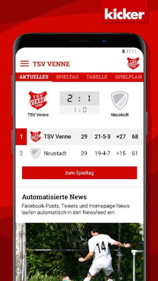 All information about the club TSV Venne now in the club home app of kicker amateur football.