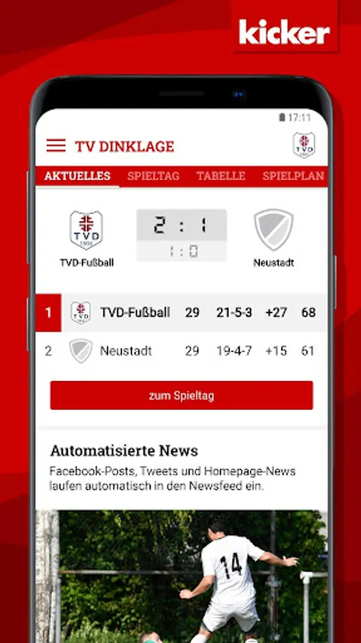 All information about the club TV Dinklage now in the club home app of kicker amateur football.