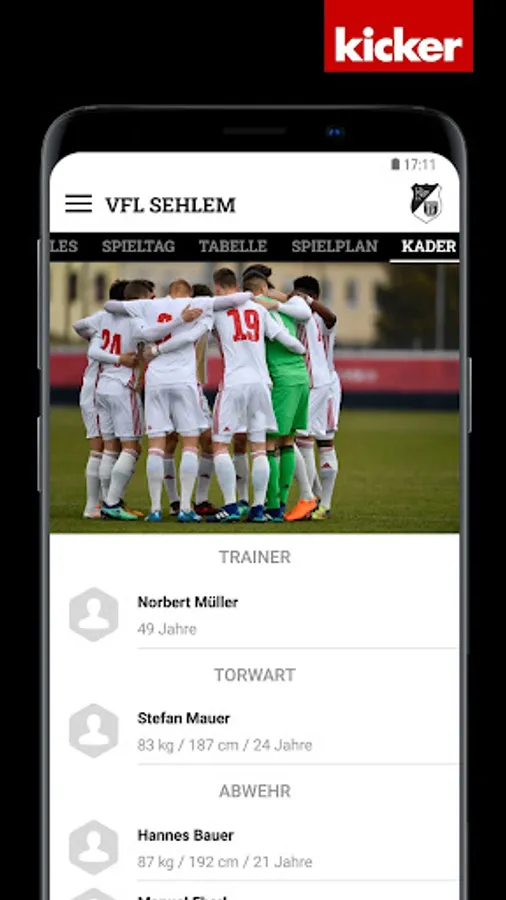 All information about the club VfL Sehlem now in the club home app of kicker amateur football.