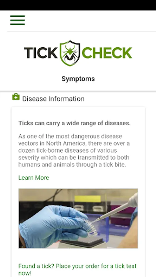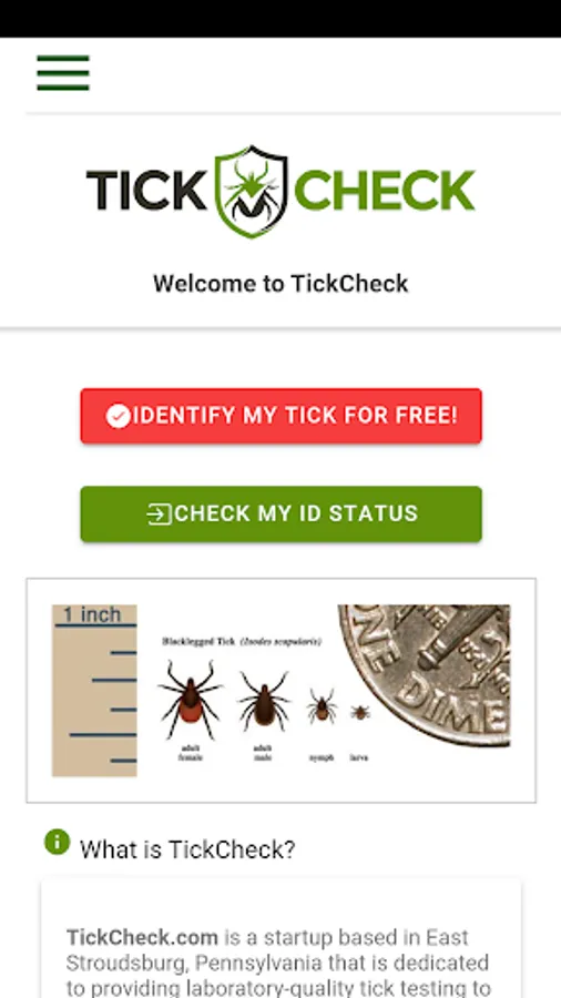 Bitten by a tick? TickCheck can help! This free app, supported by TickCheck.com Tick Testing, provides FREE tick identification services and valuable resources on Lyme disease, tick removal, and more.