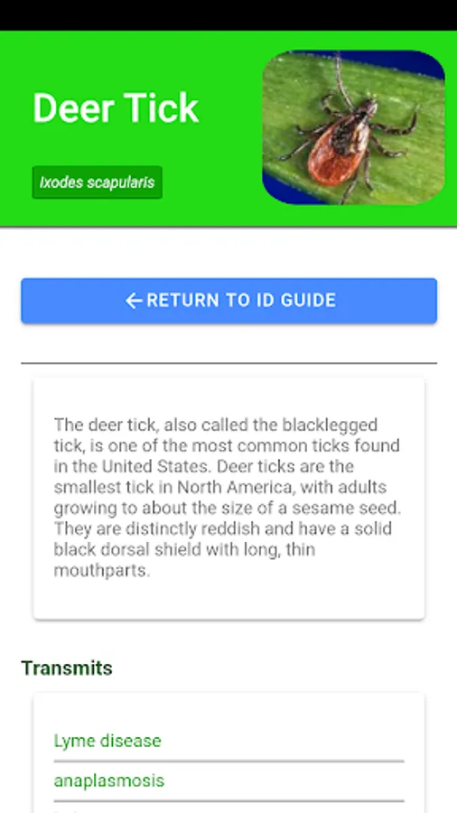 • Handy tick identification guide for all major species of ticks present in North America