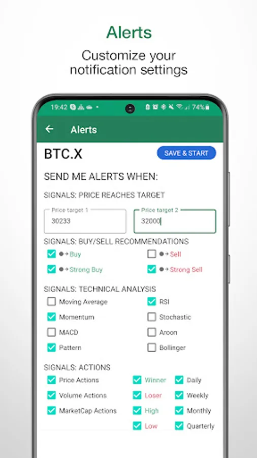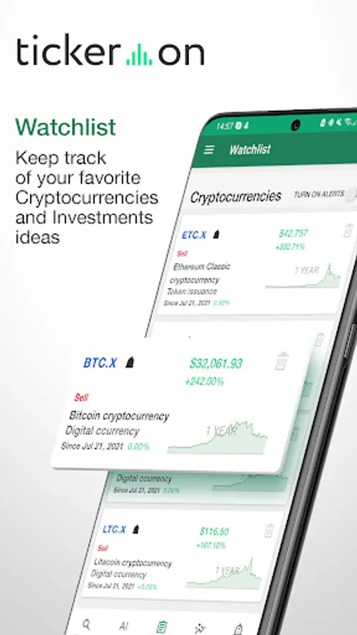 Create crypto watchlists with personalized live crypto market signals and buy and sell recommendations.
