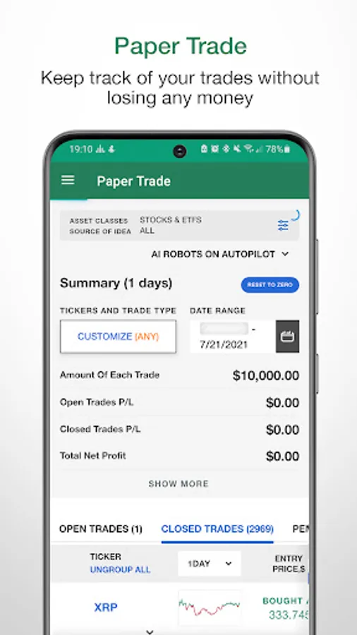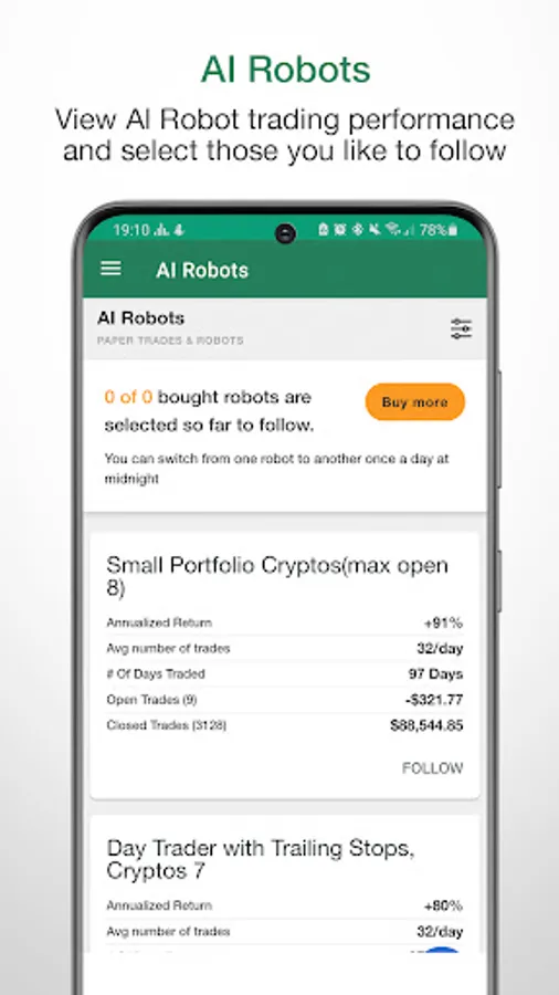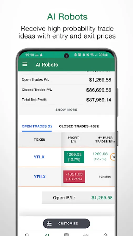 With AI Robots you can view live buy and sell trades with potential profit and stop loss.