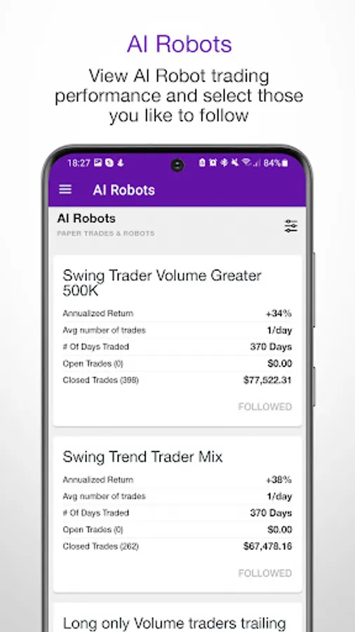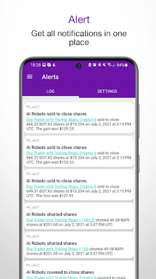 Receive timely alerts with each trade. The backtested AI models are updated in live time, giving stock investors daily recommendations that are able to outperform the market by 50-90%