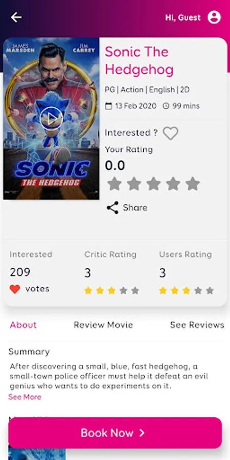 2. Get complete information about the movie- The Cast and crew, quick story synopsis, show time duration, critic reviews, user reviews and more.